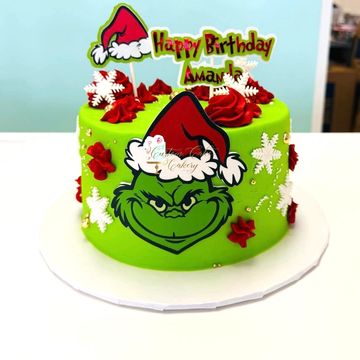 8 in 2-layer cake flavor of your choice, colored buttercream, sprinkles and birthday message.